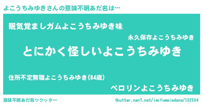 | ポケモン風あだ名 | 『ヒヨコウチミユキ』『メロヨッコ』 |