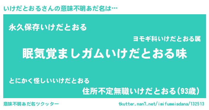 | ヘコむあだ名 | 『いけだとおる(笑)』『いけっちょ』 |