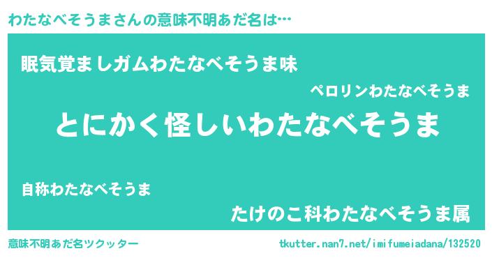 | 胡散臭い通販商品みたいなあだ名 | 『伝統あるサプリメント…その名も「わたなべそうま」』 |