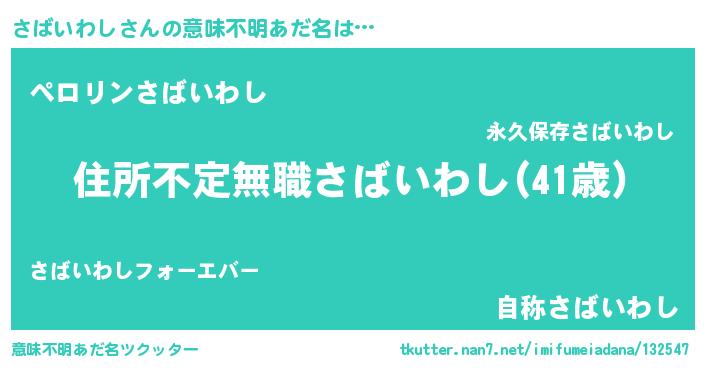 | 男性向けラノベタイトル風あだ名 | 『この素晴らしい世界にさばいわしを!』 |