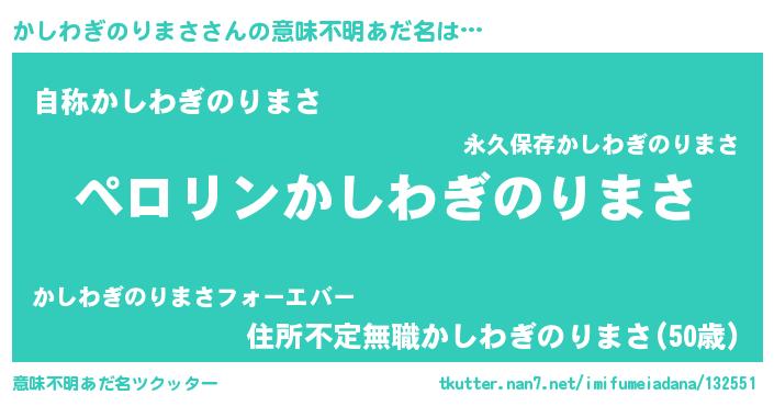 | ヒーロー風カッコイイあだ名 | 『スーパーカシワギノリマサ』 |