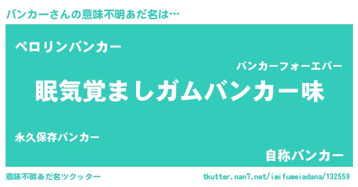 | ヘコむあだ名 | 『バンふぇ~』『酢こんぶ』『バンを』 |