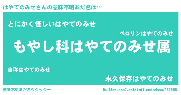 | 胡散臭い通販商品みたいなあだ名 | 『伝統あるサプリメント…その名も「はやてのみせ」』 |