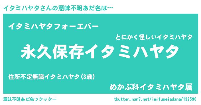 | 胡散臭い通販商品みたいなあだ名 | 『来世でも幸せになれる水素水…その名も「イタミハヤタ」』 |