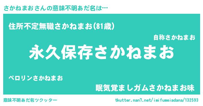 | 男性向けラノベタイトル風あだ名 | 『さかねまおという概念が存在しない退屈な世界 』 |