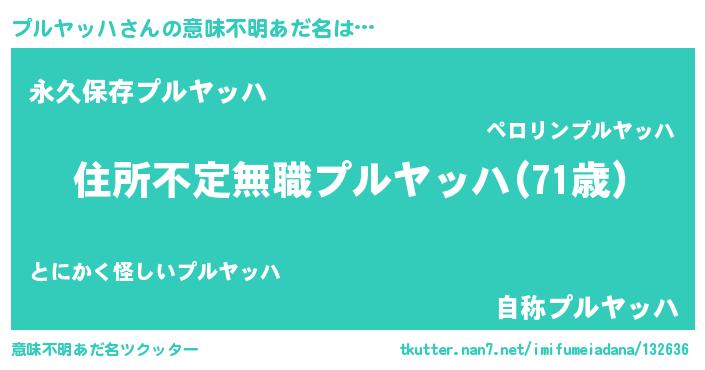 | ヘコむあだ名 | 『プルヤッハ(苦笑)』『プルにゅー』 |