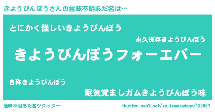 | ファンタジー風あだ名 | 『エターナルキヨウビンボウー』 |