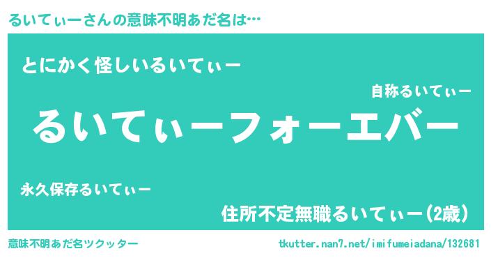 | ファンタジー風あだ名 | 『エターナルルイティーー』『ゼルイトゥ』 |