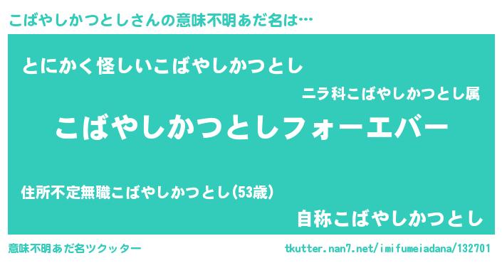 | ファンタジー風あだ名 | 『エターナルコバヤシカツトシー』 |