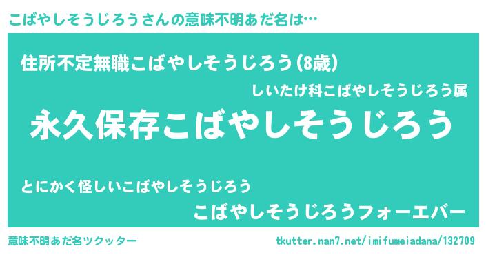 | 胡散臭い通販商品みたいなあだ名 | 『絶対に幸福をもたらす水素水…その名も「こばやしそうじろう」』 |
