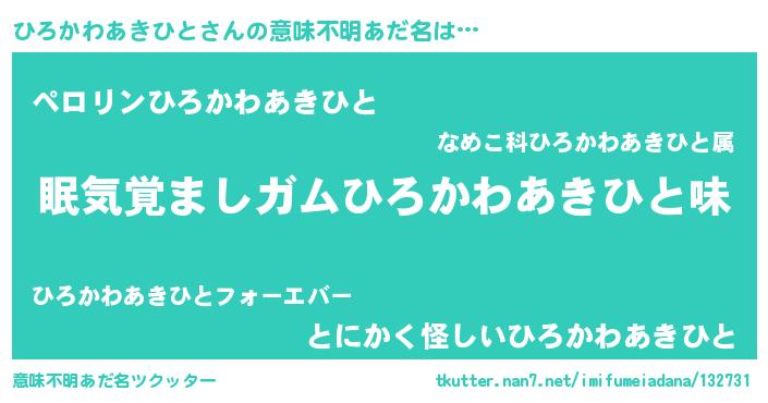| 女子向けラノベタイトル風あだ名 | 『ひろかわあきひと恋絵巻』 |