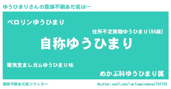 | ヘコむあだ名 | 『ゆうにー』『ゆうひまり(笑)』 |