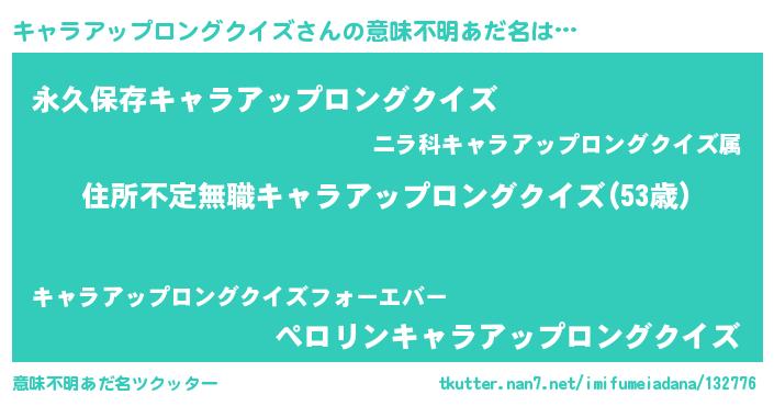 | 男性向けラノベタイトル風あだ名 | 『この素晴らしい世界にキャラアップロングクイズを!』 |