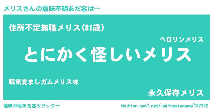 | ポケモン風あだ名 | 『ヒメリス』『メーリイ』『ゼニメリ』 |