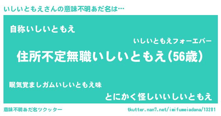 | 料理風あだ名 | 『いしいともえのカルパッチョ風』 |