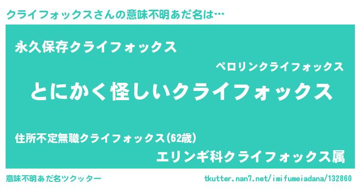 | 男性向けラノベタイトル風あだ名 | 『クライフォックスの嫁は女の子じゃないと思った?』 |