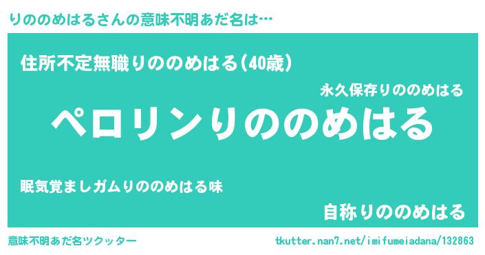 | ヘコむあだ名 | 『りのにゅー』『りののめはる(笑)』 |