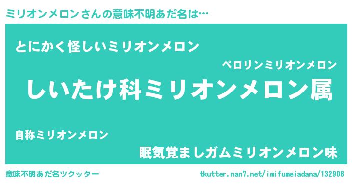| 胡散臭い通販商品みたいなあだ名 | 『信頼と実績のサプリメント…その名も「ミリオンメロン」』 |