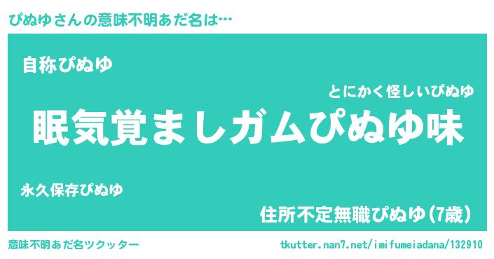 | ヒーロー風カッコイイあだ名 | 『慈愛の使者ぴぬゆ』『究極戦士ピヌユ』 |