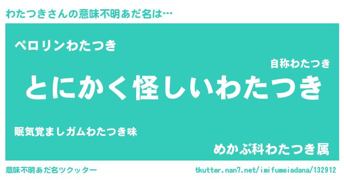 | ポケモン風あだ名 | 『メロワッタ』『ヒワタツキ』 |