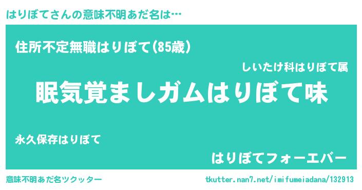 | ヒーロー風カッコイイあだ名 | 『天空の使者はりぼて』『仮面ハリダー』 |