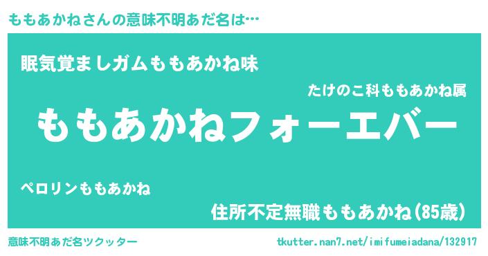 | ファンタジー風あだ名 | 『エターナルモモアカネー』 |