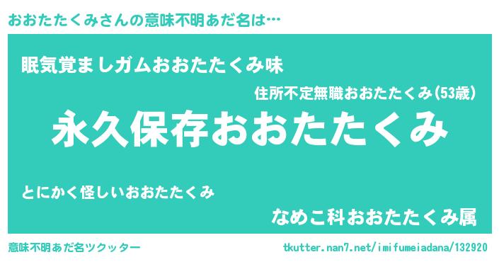 | 女子向けラノベタイトル風あだ名 | 『異世界で失敗しない100のおおたたくみ』 |