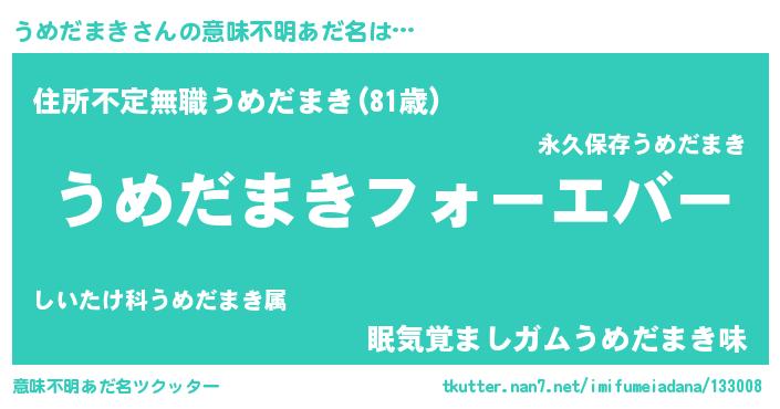 | ヒーロー風カッコイイあだ名 | 『ウルトラうめだまきマン』 |