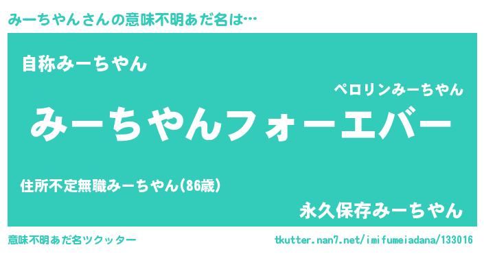 | 欧米人風あだ名 | 『みーちやんクリステル』 |
