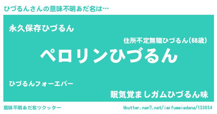 | 男性向けラノベタイトル風あだ名 | 『ヒヅルンアートオンライン』 |