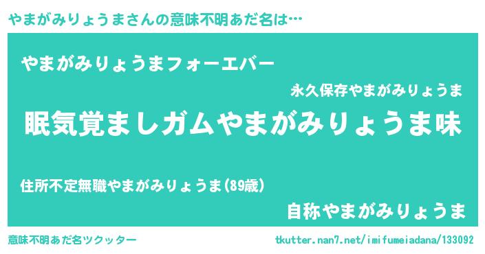 | 男性向けラノベタイトル風あだ名 | 『ノーゲーム・ノーヤマガミリョウマ』 |