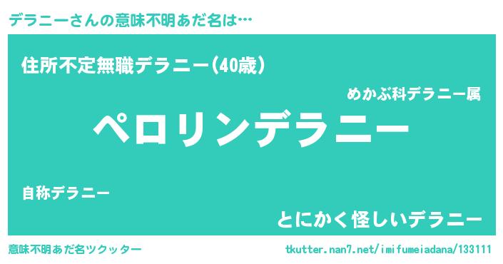 | 男性向けラノベタイトル風あだ名 | 『デラニーの憂鬱』『デラニースレイヤー』 |