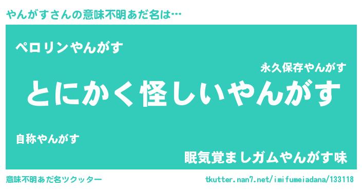 | 女子向けラノベタイトル風あだ名 | 『やんがすは平凡を望む』『闇のやんがす』 |