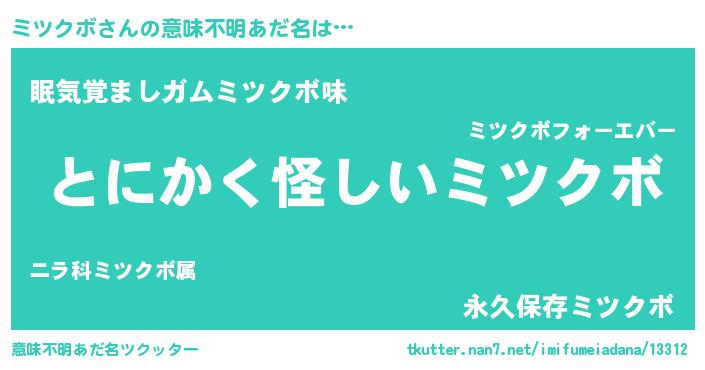 | ポケモン風あだ名 | 『ヒミツクボ』『ミックウザ』 |