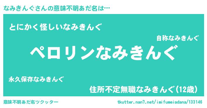 | 男性向けラノベタイトル風あだ名 | 『なみきんぐの憂鬱』 |