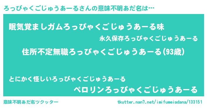 | ヘコむあだ名 | 『ろっっふぃ~』『ろっぷりん』 |