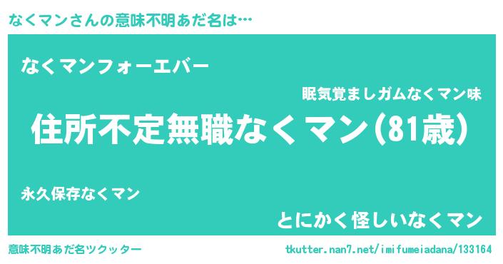 | 胡散臭い通販商品みたいなあだ名 | 『あなたにだけ特別に提供する世界で10本だけ現存している希少なブランデー…その名も「なくマン」』 |