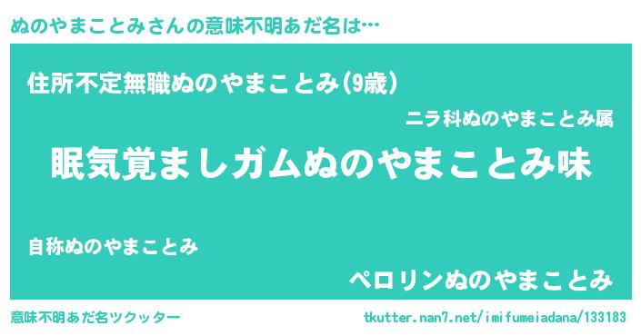 | 胡散臭い通販商品みたいなあだ名 | 『お金では代えられないイリジウム磁石…その名も「ぬのやまことみ」』 |