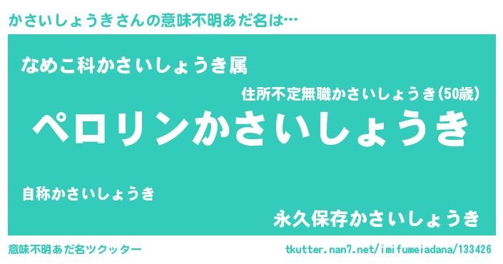 | 男性向けラノベタイトル風あだ名 | 『カサイショウキアートオンライン』 |