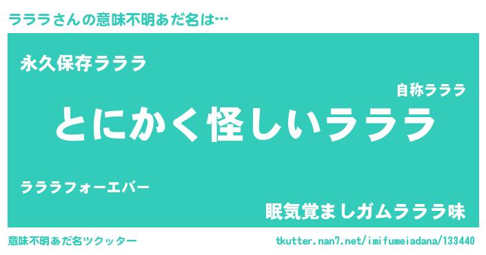 | ポケモン風あだ名 | 『ヒラララ』『ゼニララ』『ララゴンZ』 |