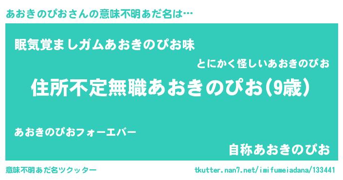 | 男性向けラノベタイトル風あだ名 | 『この素晴らしい世界にあおきのぴおを!』 |