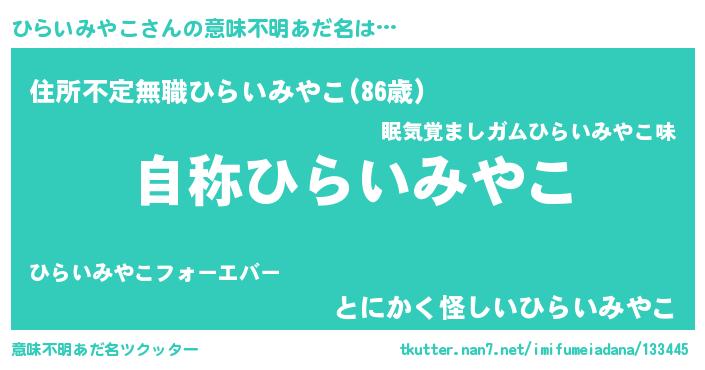| 欧米人風あだ名 | 『ひらいみやこ・ステッグマイヤー』 |