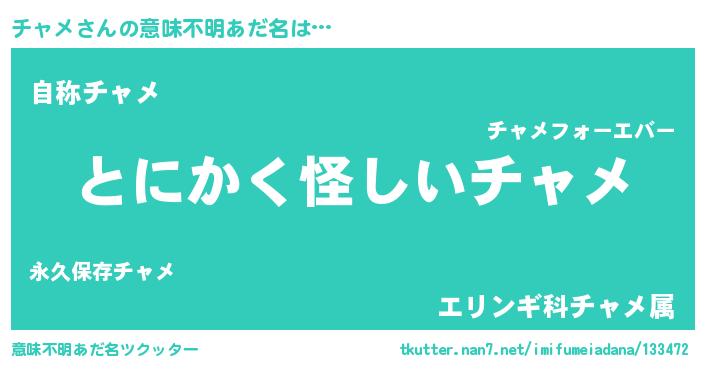 | ヒーロー風カッコイイあだ名 | 『黄金騎士チャ』『究極戦士チャメ』 |