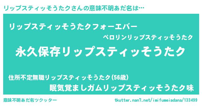 | 胡散臭い通販商品みたいなあだ名 | 『絶対に幸福をもたらす水素水…その名も「リップスティッそうたク」』 |