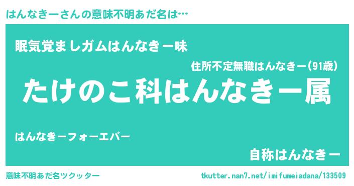 | 料理風あだ名 | 『はんなきーごはん』 |
