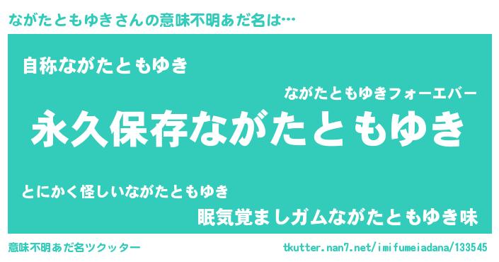 | ヘコむあだ名 | 『ながたともゆき(苦笑)』『酢こんぶ』 |