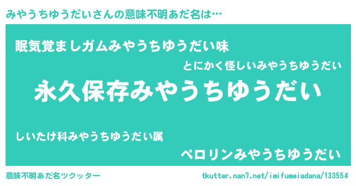 | 男性向けラノベタイトル風あだ名 | 『みやうちゆうだいに滅ぼされるだけの簡単なお仕事です』 |