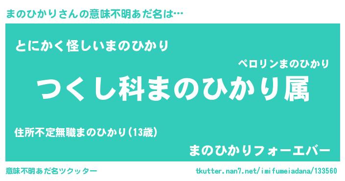 | 男性向けラノベタイトル風あだ名 | 『うちのまのひかりが世界を掌握している!』 |