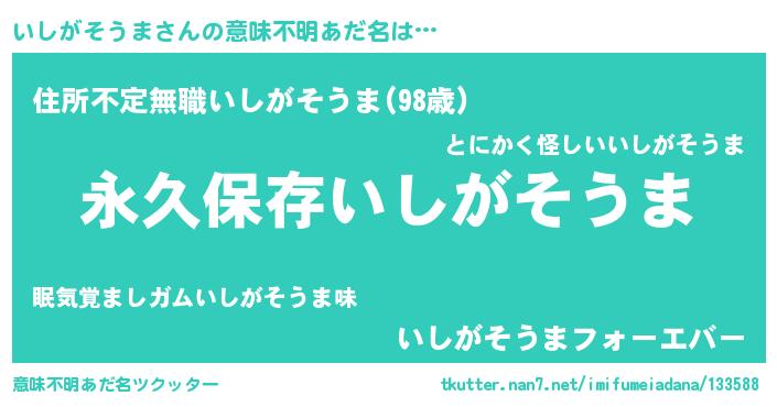 | 男性向けラノベタイトル風あだ名 | 『いしがそうまという概念が存在しない退屈な世界 』 |