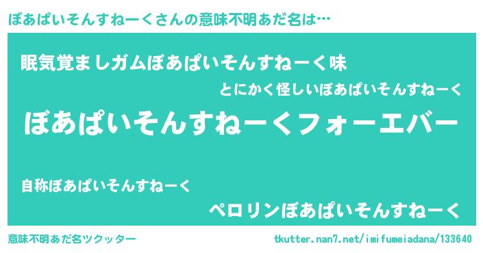 | 欧米人風あだ名 | 『ぼあぱいそんすねーくクリステル』 |
